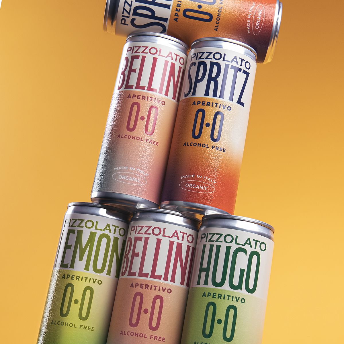 Nell’interpretare la linea Pizzolato 0.0, ogni lattina è diventata un racconto di colore e materia, che interseca le atmosfere degli anni '70 con un lettering ricercato e una vibe freschissima.