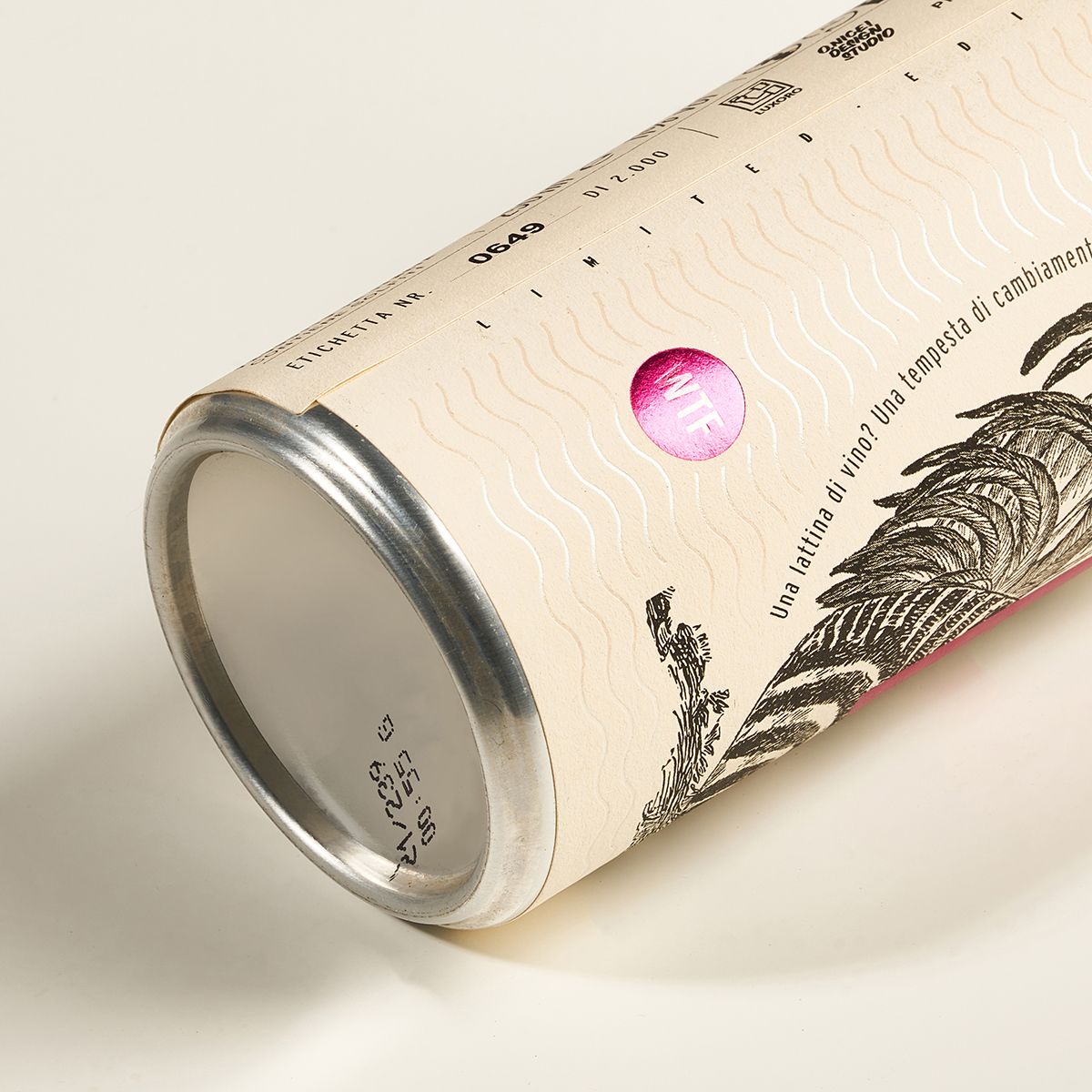 Creature immaginarie e bizzarre ci osservano dall’etichetta di questa lattina. L’obiettivo è destare meraviglia e curiosità nel consumatore, che resterà ugualmente meravigliato dalla qualità del vino all’interno. La natura surreale dei due animali richiama l’essenza del packaging stesso: un vino di alta qualità che si presenta in lattina è inatteso e non convenzionale, ma allo stesso tempo pratico e sostenibile, un’idea che va oltre l’attuale.